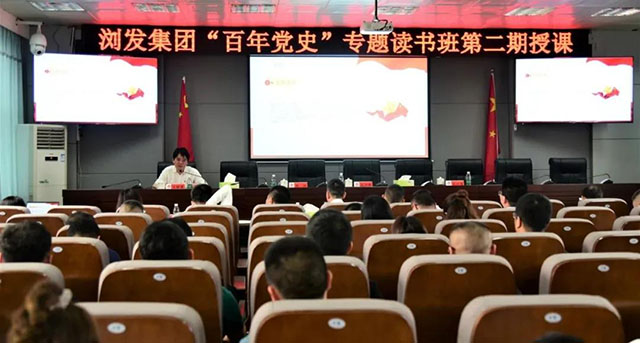 學(xué)習(xí)研討會(huì)結(jié)束后,瀏發(fā)集團(tuán)還開(kāi)展了“百年黨史”專題讀書(shū)班授課。集團(tuán)黨委副書(shū)記、總經(jīng)理王輝章作了題為《 學(xué)國(guó)企“家史”謀高質(zhì)量發(fā)展》的主題黨課,為全體黨員講授國(guó)企“家史”,指導(dǎo)大家知史力行,賡續(xù)文化,行穩(wěn)走遠(yuǎn)。