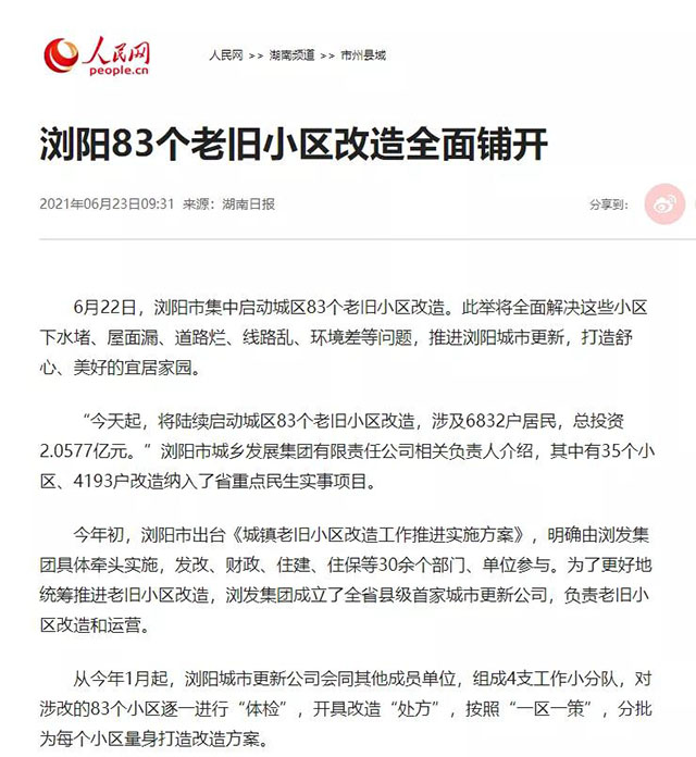6月22日,瀏陽(yáng)舉行2021年城鎮(zhèn)老舊小區(qū)改造集中開工活動(dòng),城區(qū)包括瀏陽(yáng)一中宿舍在內(nèi)的83個(gè)老舊小區(qū)按下“開工鍵”。這一重大民生實(shí)事,創(chuàng)下兩項(xiàng)“全省第一”,引來中央、省市媒體密集推介。