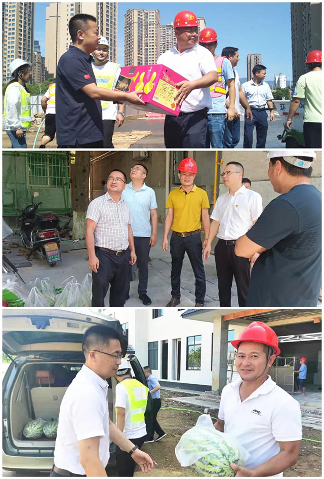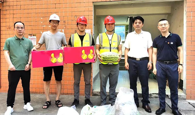 本次“送清涼”活動分五組同時進(jìn)行,由集團(tuán)領(lǐng)導(dǎo)班子帶隊,深入工程、征拆、渣土、五環(huán)等27個項目現(xiàn)場,為一線送上西瓜、綠豆、白糖、涼茶等清涼物資。