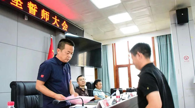 會(huì)上,各施工單位依次遞交了2021年瀏陽(yáng)市示范老舊小區(qū)改造承諾書(shū)。