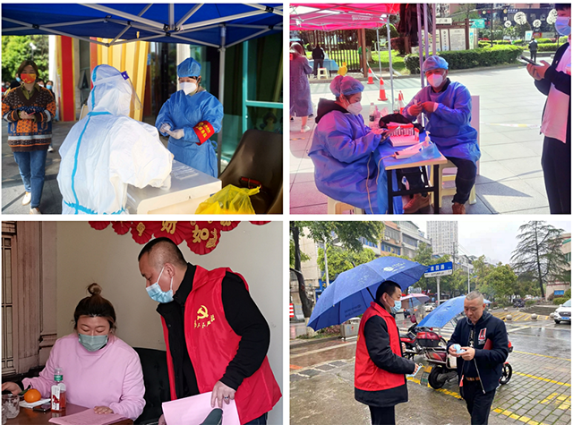“請戴好口罩、保持間距!”“請在這邊掃描場所碼,謝謝配合!”“請問您家有從外地回來的嗎?”瀏發(fā)防疫先鋒隊第一時間下沉到淮川街道各個社區(qū),他們是“排查員”,入戶排查重點人員;他們是“宣傳員”,向群眾宣傳疫情防控知識,動員按時核酸檢測;他們還是“守門員”,參與掃碼測溫、人員登記、秩序維護等工作。他們以“黨員紅”“志愿者紅”守護著人民群眾的“健康綠”,彰顯了疫情防控的“紅色力量”。