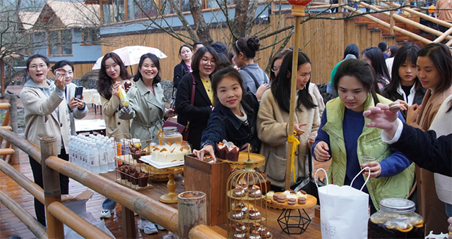 這里是瀏發(fā)集團引進、投資建設的高端民宿項目——瀏陽五號山谷原鄉(xiāng)民宿。這個歷經近8個月打造的匠心之作,于3月8日迎來了試營業(yè)。民宿藏匿于山谷之中,如詩如畫,風景優(yōu)美,吸引了瀏發(fā)女職工們參觀留影,感受公司文旅項目的蓬勃生機。