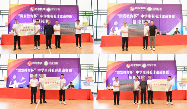 比賽開始前,市文化旅游廣電體育局、瀏陽市第三中學(xué)、第十一中學(xué)、新屋嶺初級中學(xué)向瀏發(fā)教育百宜培訓(xùn)中心授牌,確立其為籃球、羽毛球訓(xùn)練基地及生源基地。