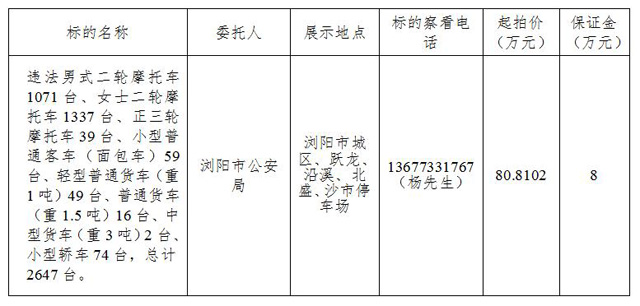 拍賣公司地址:瀏陽市人民東路45號 (臨時辦公場所)