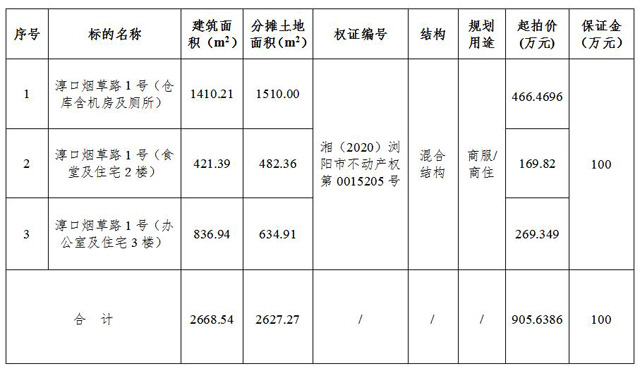 受瀏陽市淳口鎮(zhèn)人民政府委托,根據國有資產管理的相關規(guī)定,我公司定于2021年1月28日上午10:00在瀏陽市城鄉(xiāng)發(fā)展集團有限責任公司8樓會議室(人民東路60號),對委托人所屬的位于瀏陽市淳口鎮(zhèn)煙草路1號的3宗房地產權向社會進行公開拍賣(視情整體或分標拍賣)。