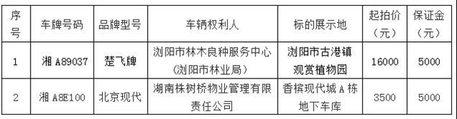 受瀏陽市林木良種服務(wù)中心和湖南株樹橋物業(yè)管理有限責(zé)任公司委托,根據(jù)國有資產(chǎn)管理的相關(guān)規(guī)定,我公司定于2021年7月27日上午10:00在瀏陽市城鄉(xiāng)發(fā)展集團(tuán)有限責(zé)任公司8樓會(huì)議室,對兩臺(tái)車輛面向社會(huì)進(jìn)行公開拍賣。拍賣標(biāo)的如下: