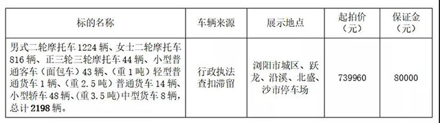 受瀏陽市公安局委托,根據(jù)國有資產(chǎn)管理的相關(guān)規(guī)定,我司定于2021年8月11日上午10:00在瀏陽市城鄉(xiāng)發(fā)展集團有限責任公司8樓會議室(人民東路60號),對一批行政執(zhí)法查扣滯留的違法報廢車輛進行定向拍賣(限長沙市地區(qū))。