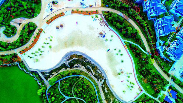 為此,承建方專門從海南三亞采集了1萬噸純天然海沙,整整裝滿了300多輛卡車,跋涉了1500多公里運(yùn)到長興湖。整個沙灘面積占了東湖風(fēng)光帶的十分之一。