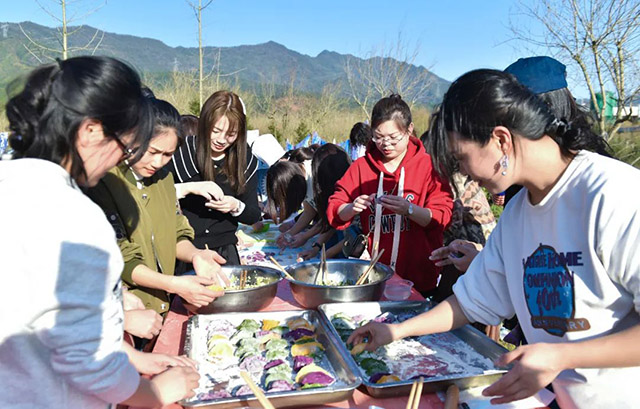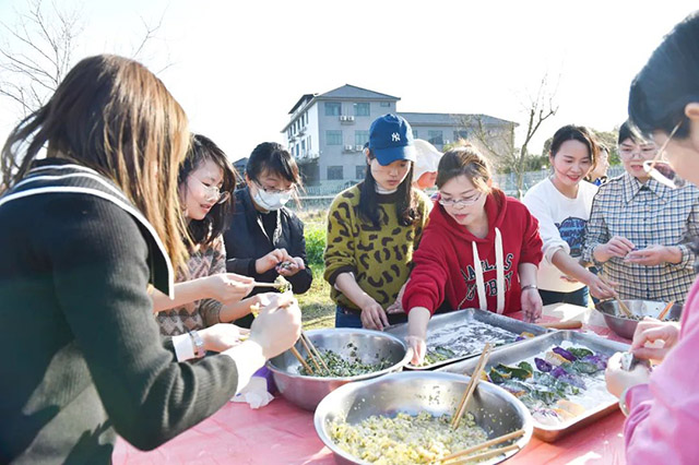 有的調(diào)餡、有的搟皮、有的包餃子、還有的負(fù)責(zé)“吃”……只見手指翻飛間,一個(gè)個(gè)穿著靚麗外衣的水餃揉捏而成,大家成就感滿滿,也感受到了節(jié)日的溫馨。