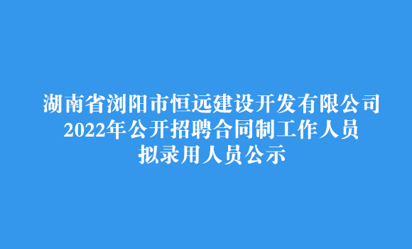 湖南省瀏陽市恒遠(yuǎn)建設(shè)開發(fā)有限公司2022年公開招聘合同制工作人員資格審查、筆試、面試、體檢、綜合考察工作均已經(jīng)結(jié)束,現(xiàn)將擬錄用人員名單公示如下: