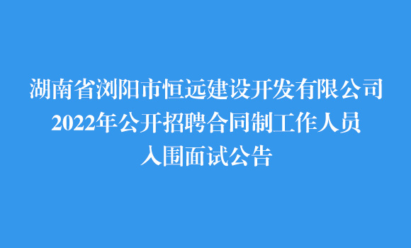 湖南省瀏陽市恒遠(yuǎn)建設(shè)開發(fā)有限公司公開招聘合同制工作人員筆試工作已結(jié)束,現(xiàn)將入圍面試人員名單予以公布,并就面試有關(guān)工作通知如下:
