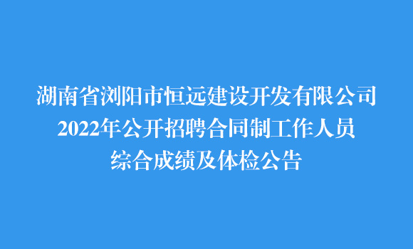 湖南省瀏陽(yáng)市恒遠(yuǎn)建設(shè)開發(fā)有限公司2022年公開招聘合同制工作人員筆試、面試工作均已結(jié)束,現(xiàn)將綜合成績(jī)及入圍體檢人員名單予以公布,并就有關(guān)工作通知如下: