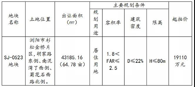 ※最終數(shù)據(jù)以瀏陽市自然資源局批準的規(guī)劃條件為準。