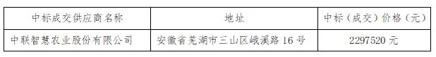 瀏陽(yáng)市五環(huán)建設(shè)開發(fā)有限公司對(duì)農(nóng)田科技推廣智能系統(tǒng)及服務(wù)進(jìn)行公開采購(gòu),現(xiàn)將采購(gòu)結(jié)果公告如下: