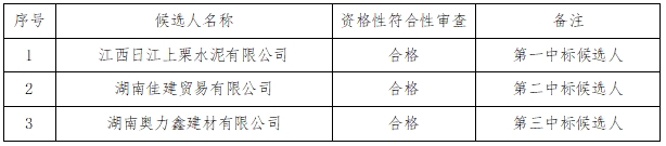 瀏陽市五環(huán)建設(shè)開發(fā)有限公司對(duì)水泥材料進(jìn)行公開采購,現(xiàn)將采購結(jié)果公告如下: