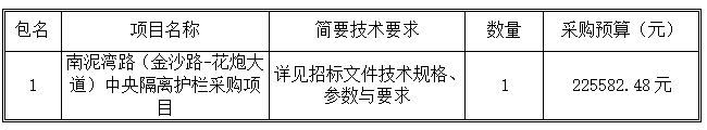 一、采購(gòu)項(xiàng)目名稱:南泥灣路(金沙路-花炮大道)中央隔離護(hù)欄采購(gòu)項(xiàng)目